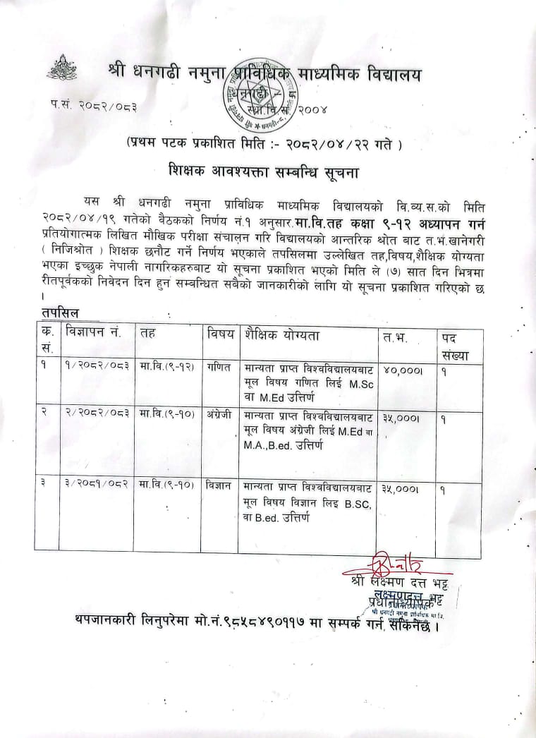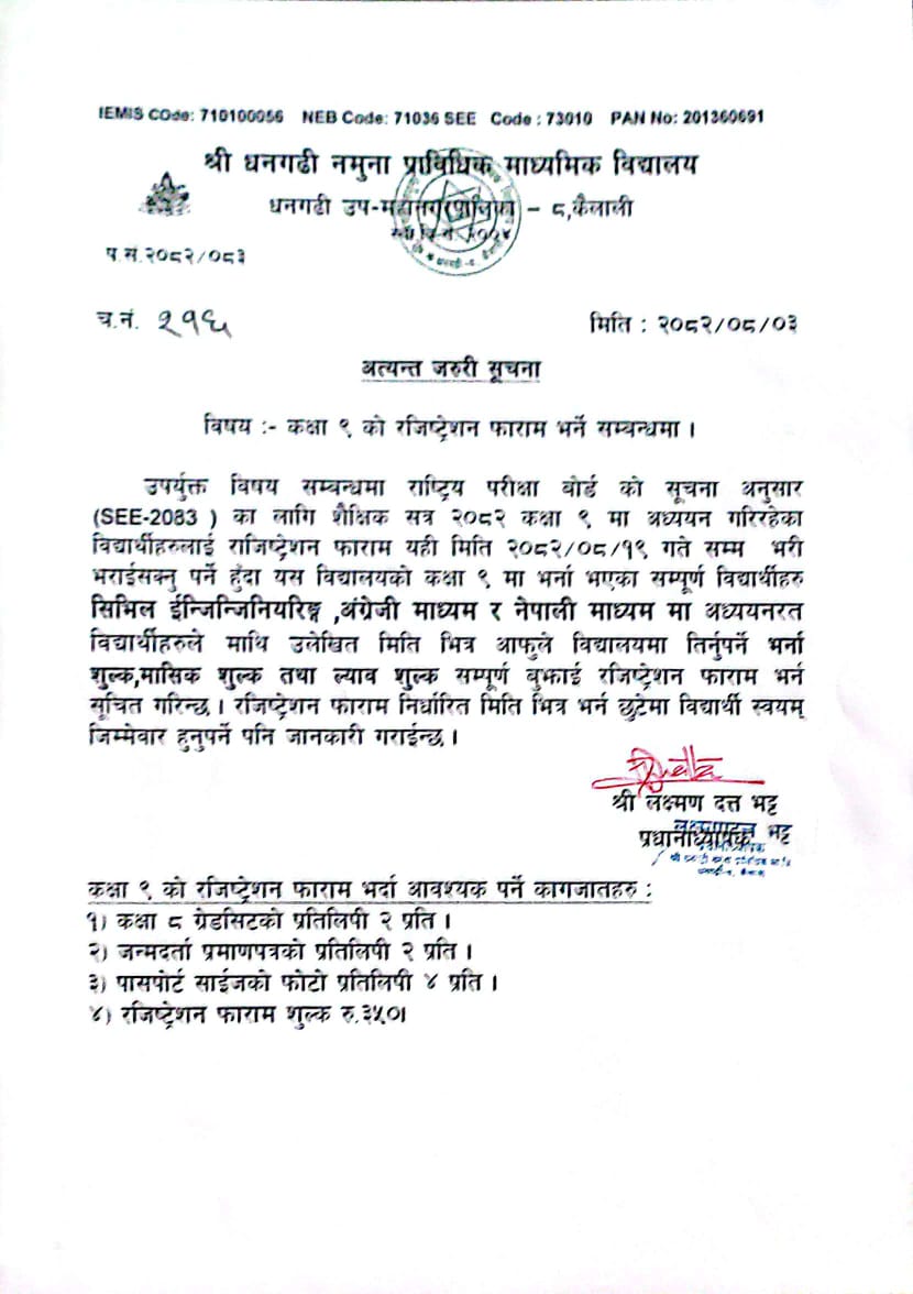 यस श्री धनगढी नमूना प्राविधिक माध्यमिक विद्यालयमा सम्भव भएसम्म अधिकतम प्रविधिका प्रयोग गरी निरन्तररुपमा विद्यालयको पठन पाठन तथा शैक्षिक गुणस्तर सुधारको लागि लक्ष्य र उद्देश्य सहितको योजना बनाई क्रमिक...