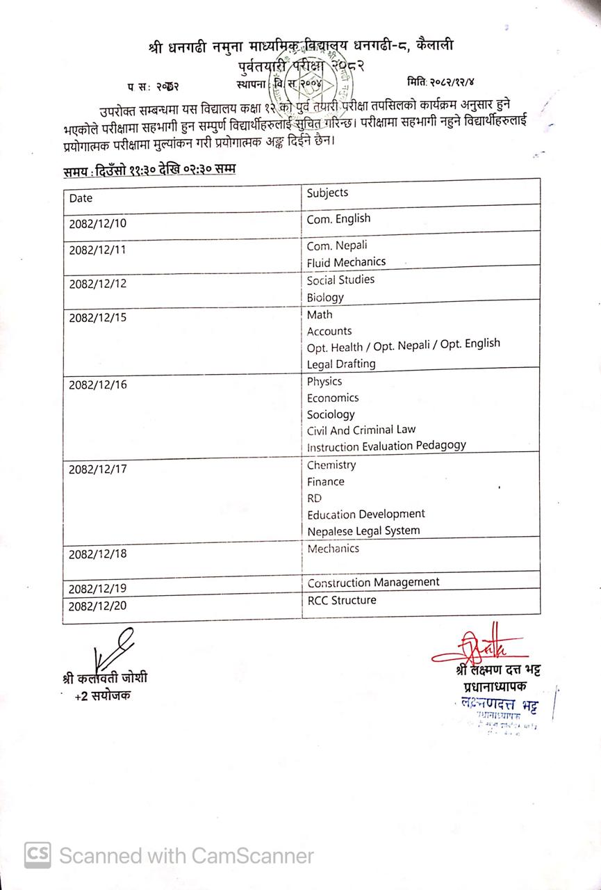 कक्षा १२ को पुर्वतयारी परीक्षा,२०८२ सम्बन्धि सूचना